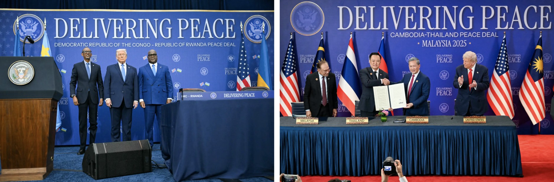 經斡旋達成的停火協議包括剛果民主共和國與盧旺達之間以及泰國與柬埔寨之間的停火協議。